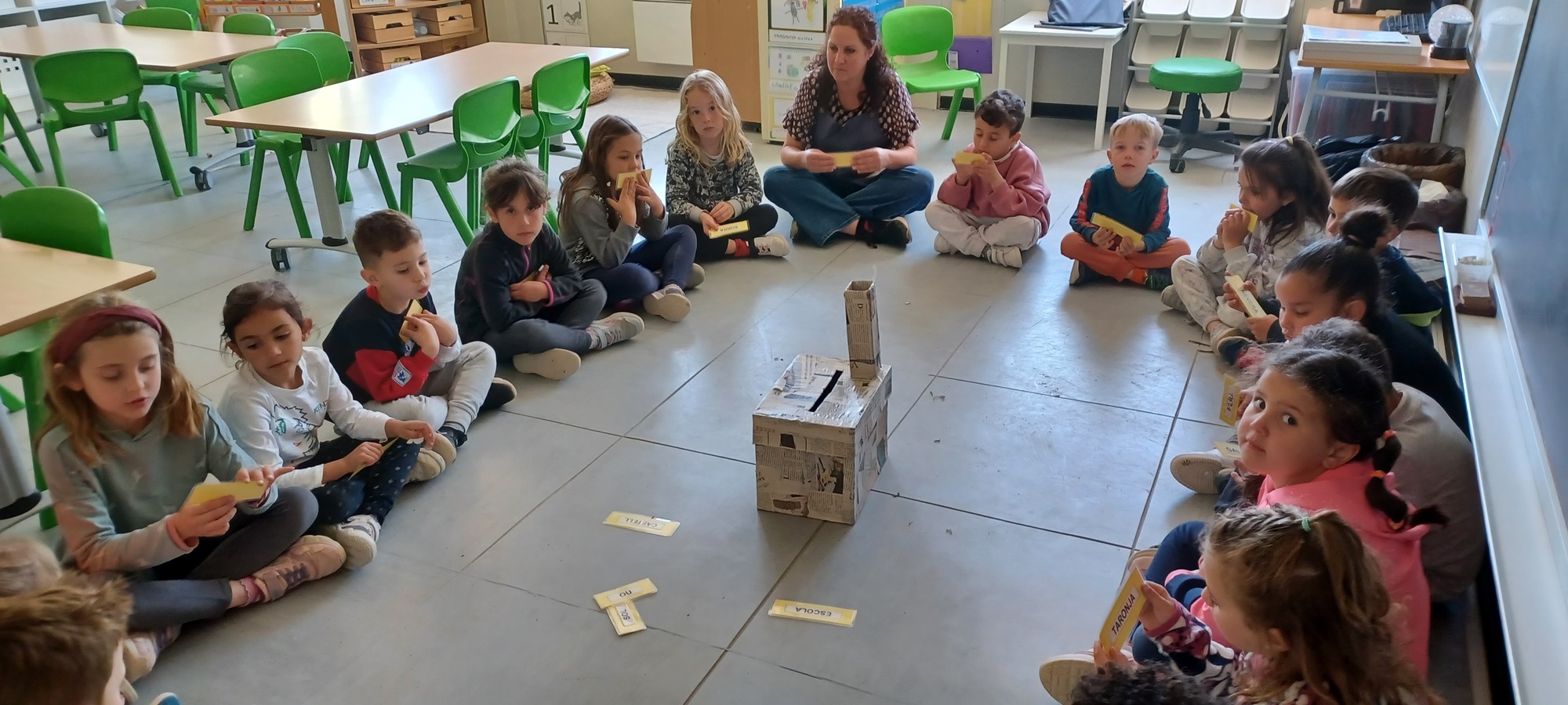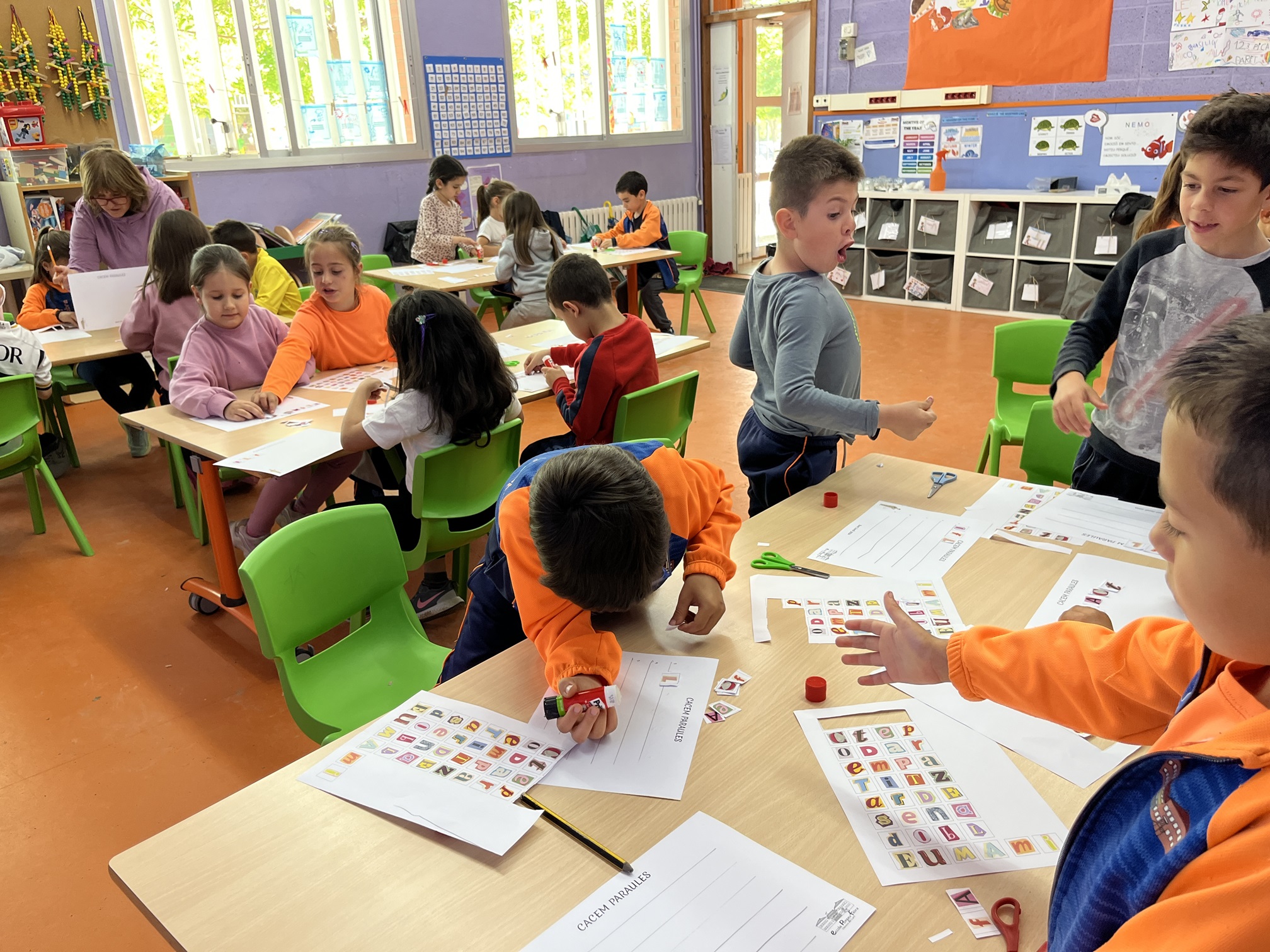 La fàbrica de les paraules a Infantil, els mots encreuats, biografies, pintures simètriques… són algunes de les propostes que realitza l’alumnat i que s’enduu a casa per compartir amb la família.