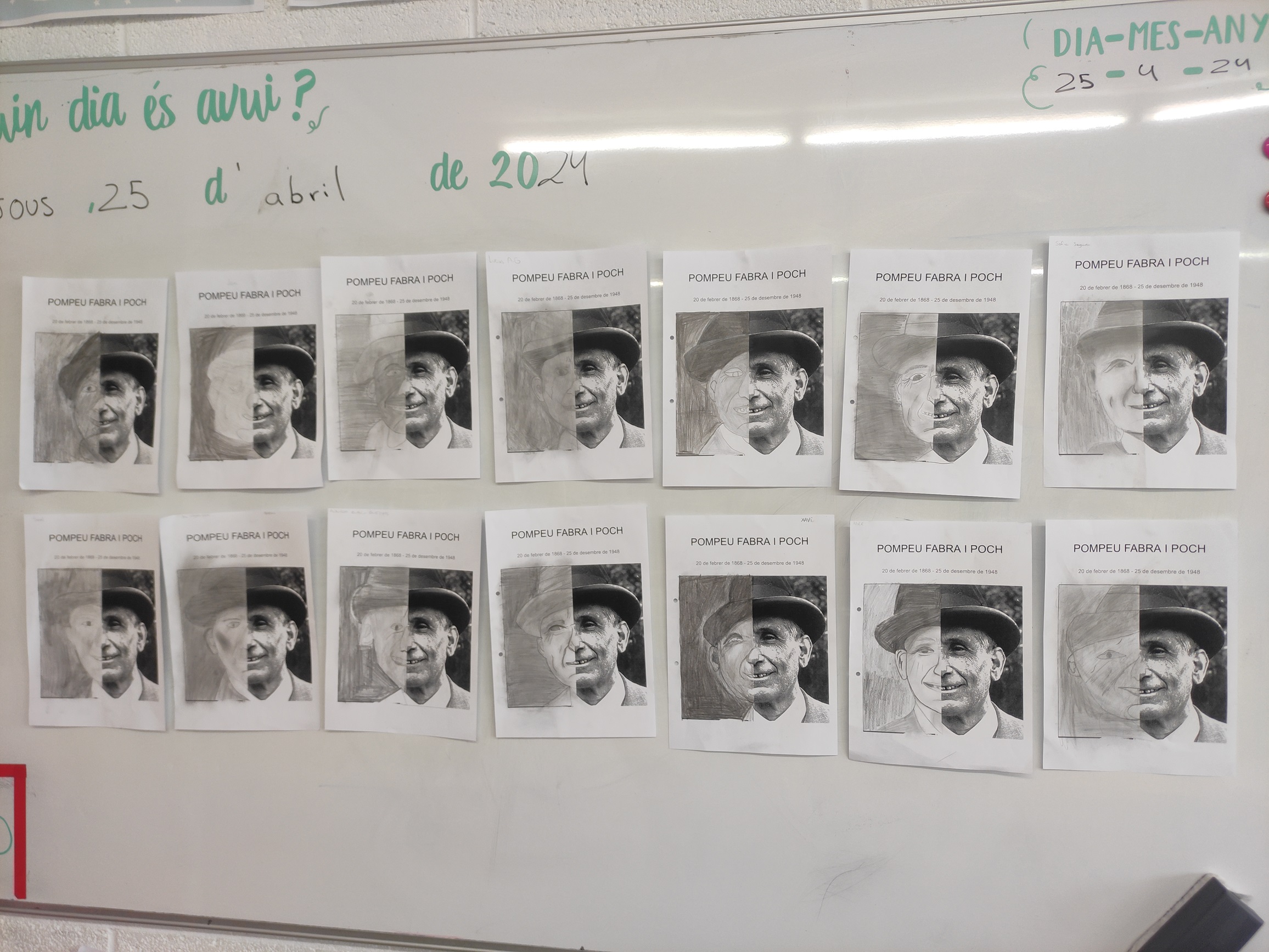 Durant la setmana de Sant Jordi, com ja és tradició a l’escola, a més de les activitats relacionades amb la festivitat, també fem tot un treball sobre el Senyor Pompeu Fabra per conèixer el personatge que dóna nom a la nostra escola.