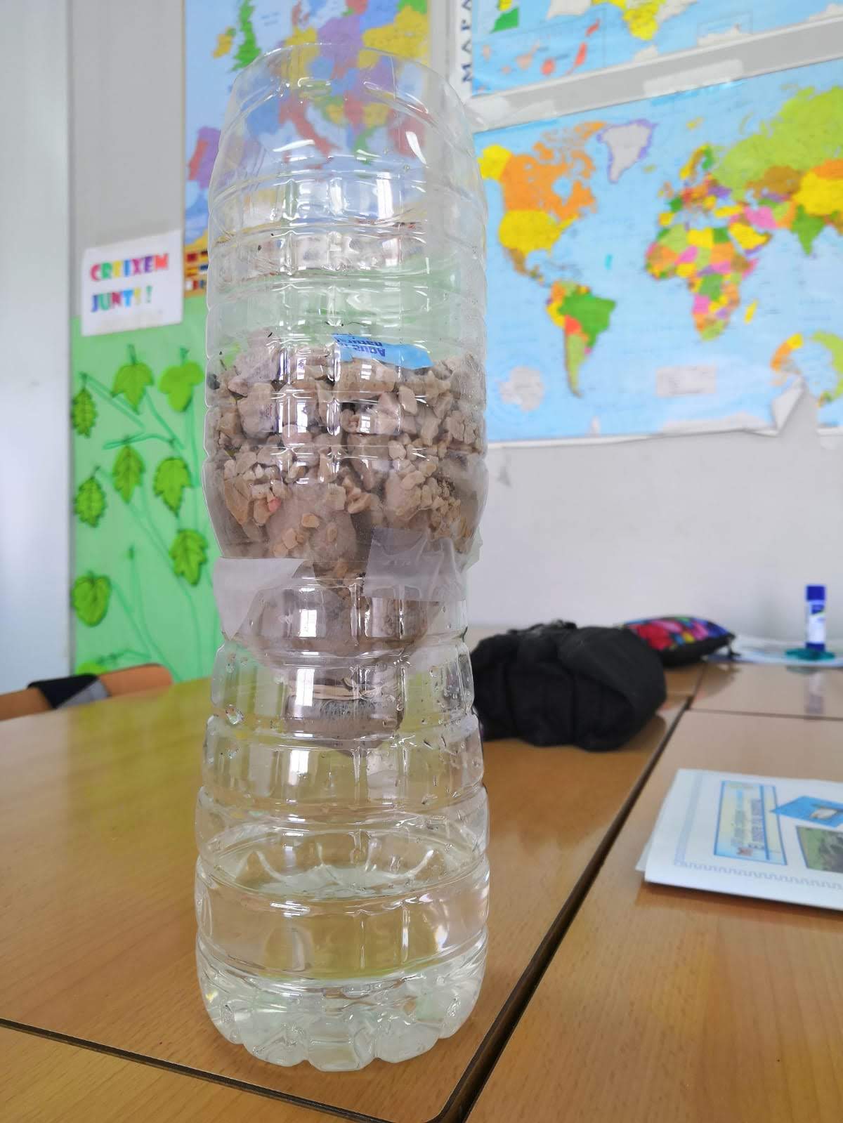 Durant tota la setmana, a cada nivell i cicle, s’han organitzat diferents activitats. La setmana de treball mediambiental ha començat amb un vídeo de presentació, exclusiu per a l’ocasió i creat pels mestres del grup de treball docent d’Escola Verda. Amb aquest vídeo es volia evidenciar la realitat del nostre riu pel que fa a la cura i a la neteja constant. El debat era el principal punt d’inici del projecte. Posteriorment, i al llarg dels dies, l’alumnat ha pogut treballar el riu a través de webquests i jclics, amb petites sortides a la Riera de Castellolí per veure l’entorn natural d’una riera, amb experiments com el d’una depuradora per tal de netejar mostres d’aigua del riu….i un munt de propostes on l’alumnat ha gaudit experimentant. A més, al vestíbul de l’escola, es comptava amb un ànec de coll verd, tamany enorme, fet amb reixat i omplert de plàstics, que simbolitzava la necessitat de la cura del nostre riu. El vestíbul també s’ha convertit en un espai de debat que es complementava amb un memori amb reflexions mediambientals.