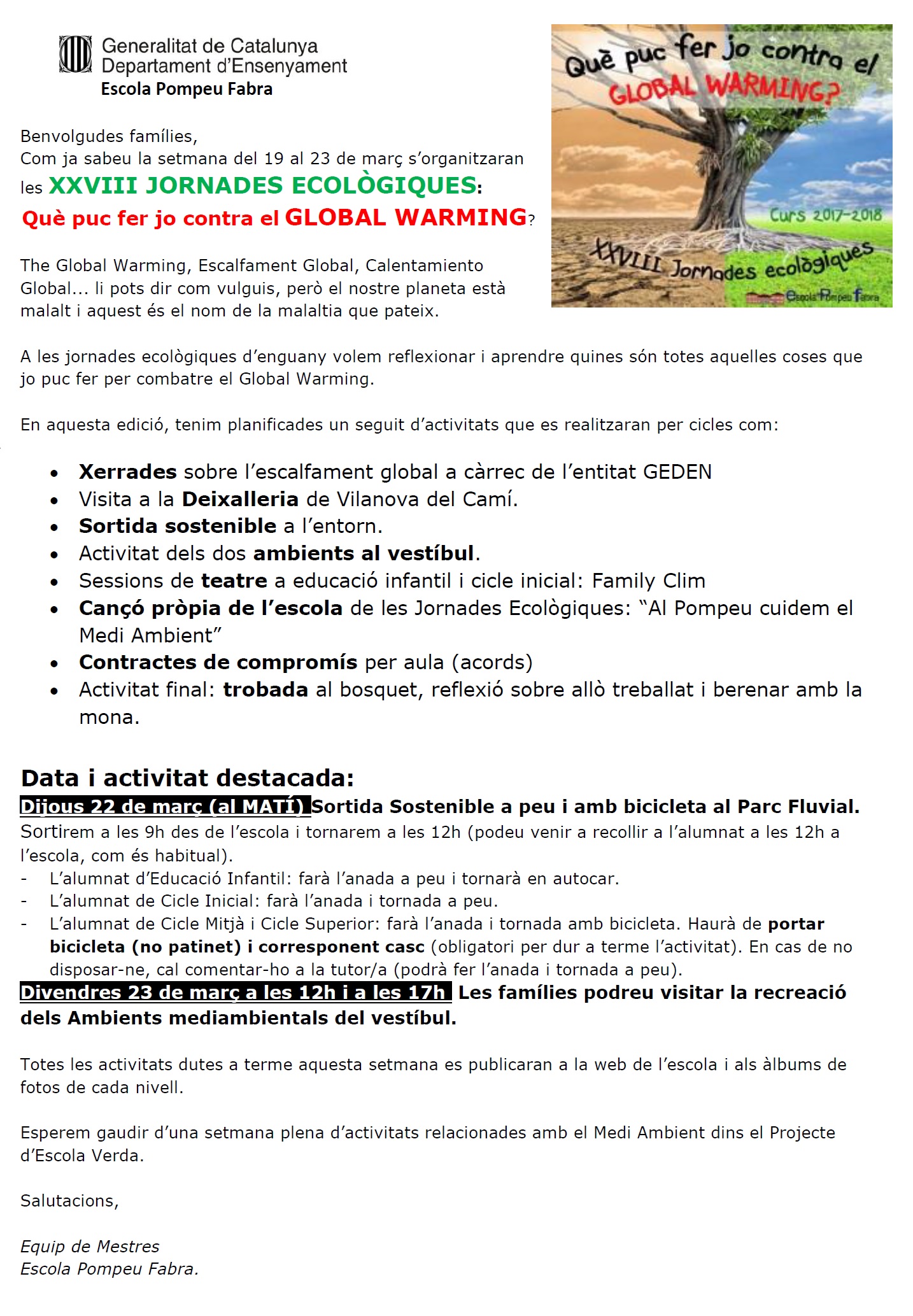 XXVIII Jornades Ecològiques Feu un comentari / Per admin / 14 de març de 2018 / General Infantil Portada Primària