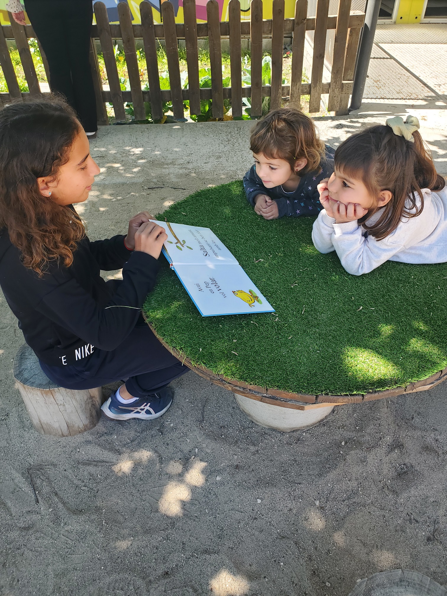 Després de l’estona d’esbarjo vam organitzar la tradicional lectura compartida entre padrins/es i fillol/es on van poder llegir conjuntament per tota l’escola.