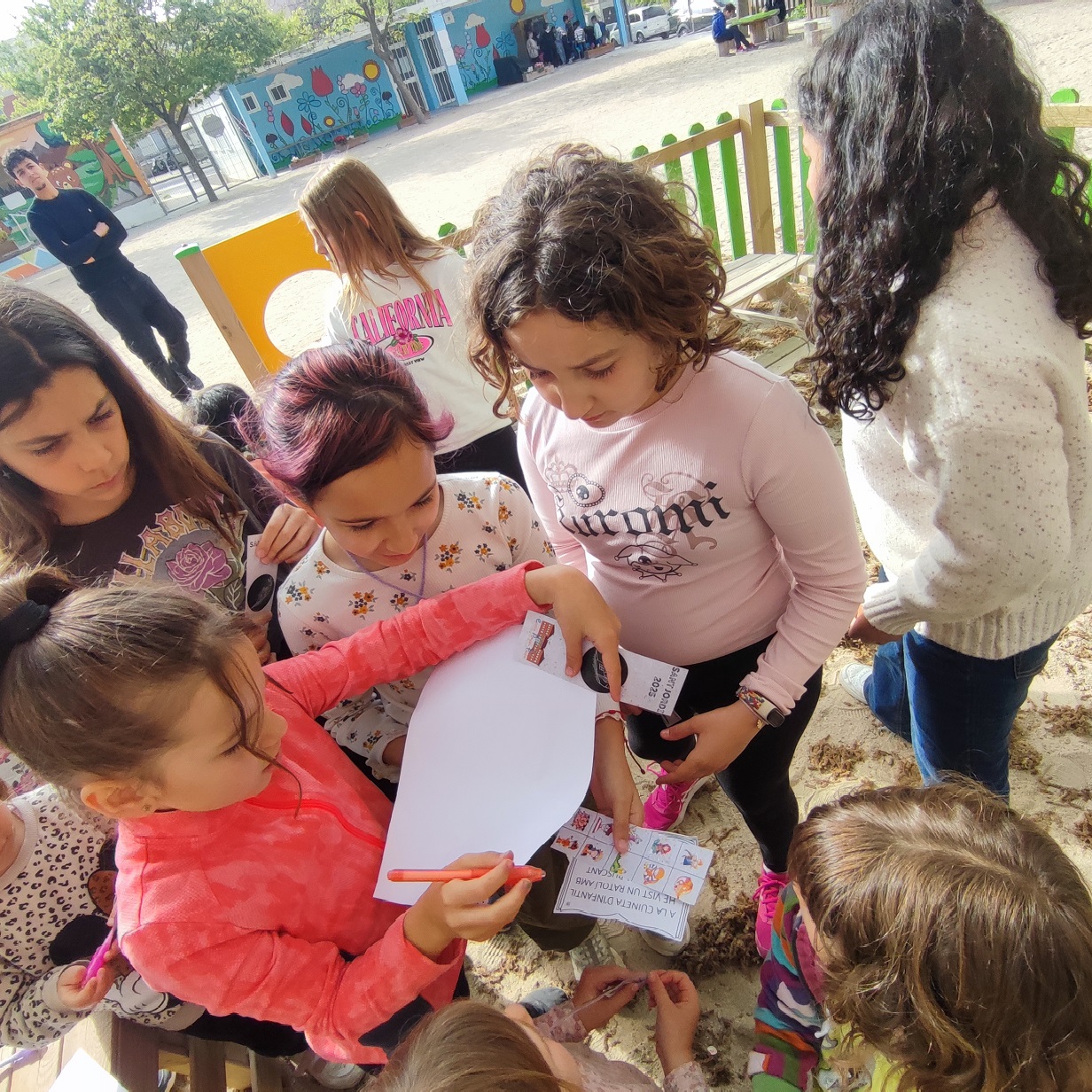 Al matí, tot l’alumnat de l’escola, en grups i dinamitzats per l’alumnat de 6è, va gaudir d’una gimcana literària, guiada per uns punts de llibres amb diferents personatges de contes, on van resoldre petits reptes que els hi van proposarar els personatges i, un cop ho van aconseguir, van rebre un obsequi de l’escola: el llapis de la nostra escola!