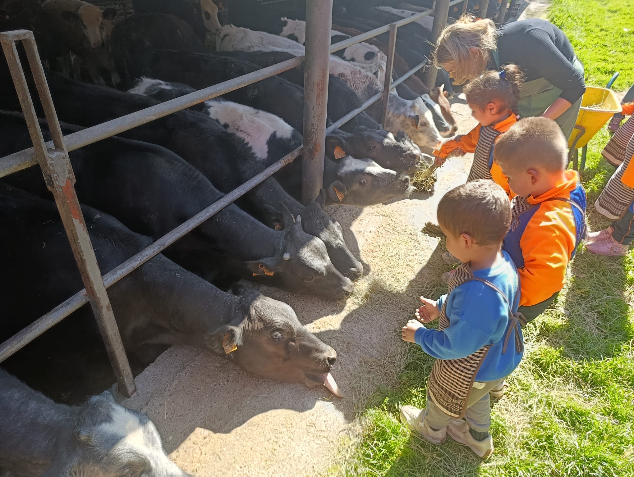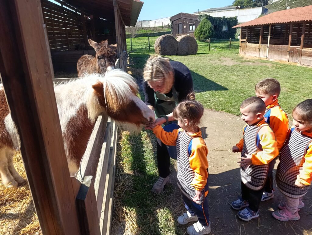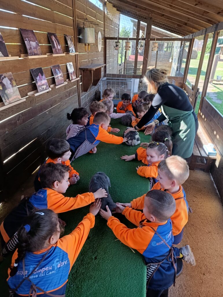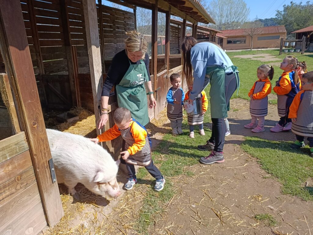 El passat divendres 13 de març, els nens i nenes de la classe d’En Patufet d’I3, vam visitar la Granja Les Pedreres. Un matí ple d’activitats relacionades amb els animals. La Carme, la grangera, ens va ensenyar una cançó i ens va proposar ajudar-la! Vam poder donar menjar al porc, el poni, a les gallines i a les vaques. També vam acariciar els conills, el porc i una gallina. Vam ajudar a recollir ous i vam aprendre a munyir vaques.
