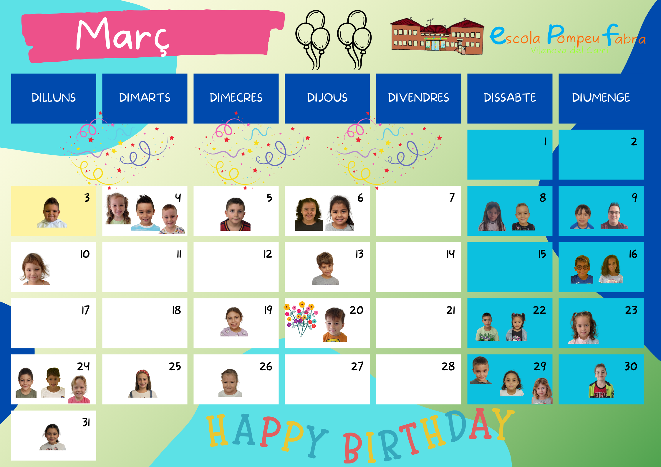 MOLTES FELICITATS ALS DE MARÇ!!! Feu un comentari / Per admin / 3 de març de 2025 / Infantil Portada Primària Moltes felicitats a tots i totes els que celebreu el vostre aniversari aquest mes de MARÇ!!!