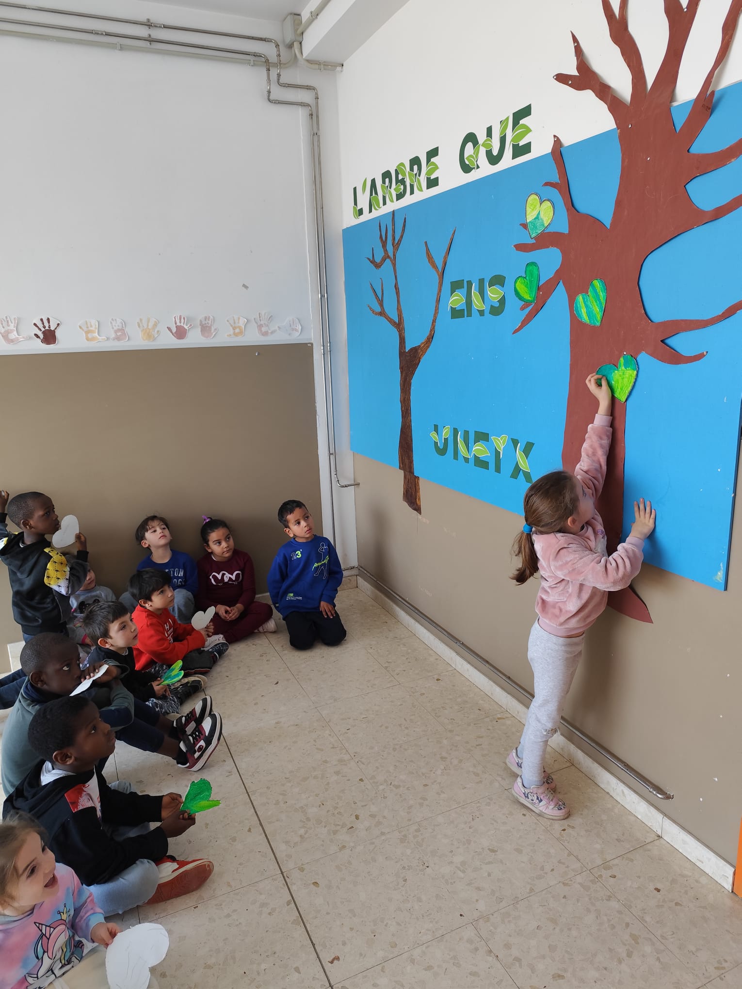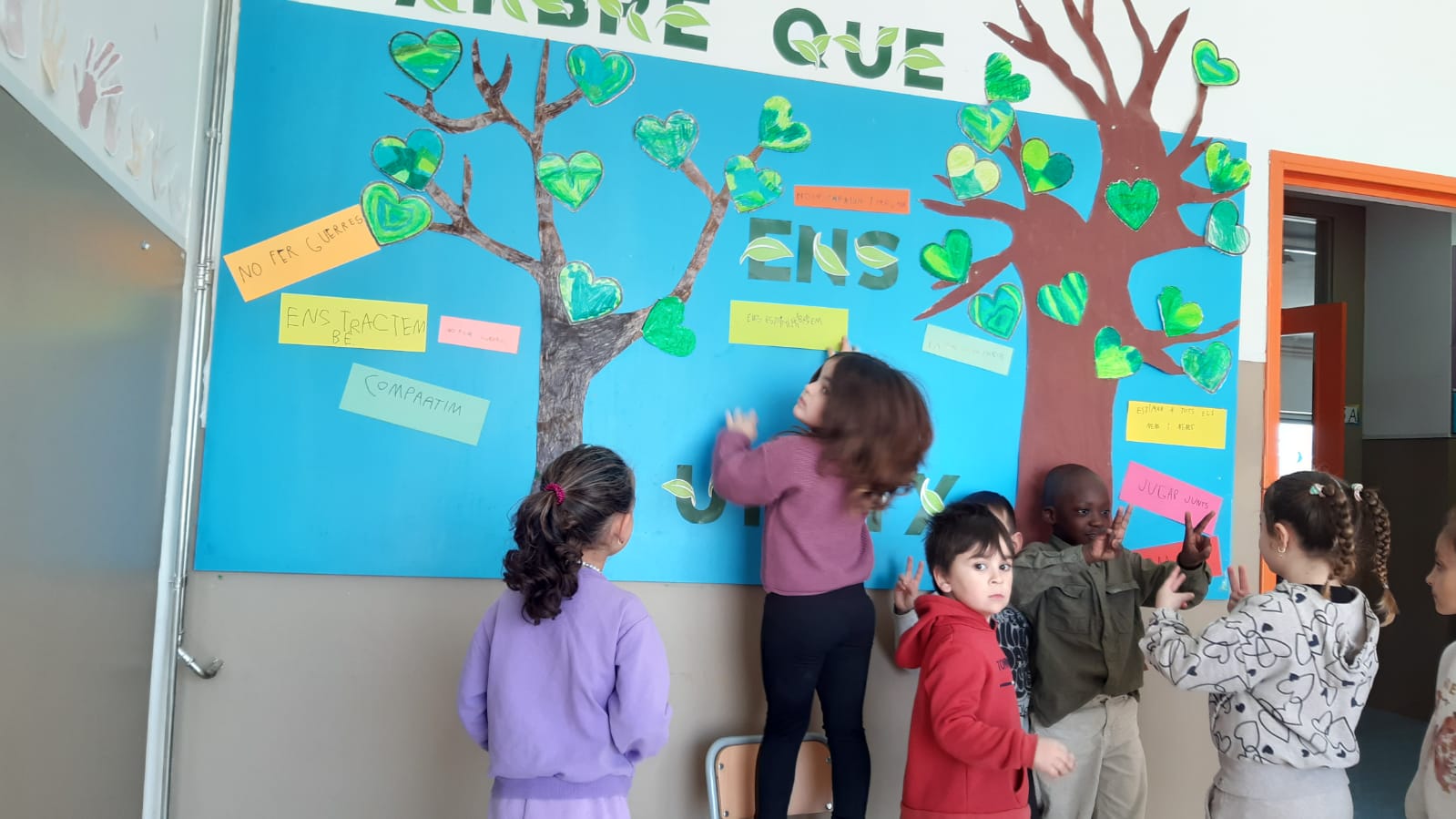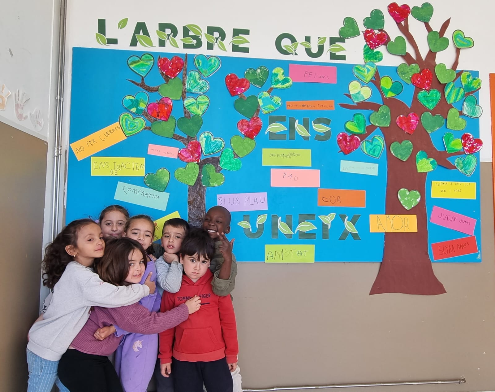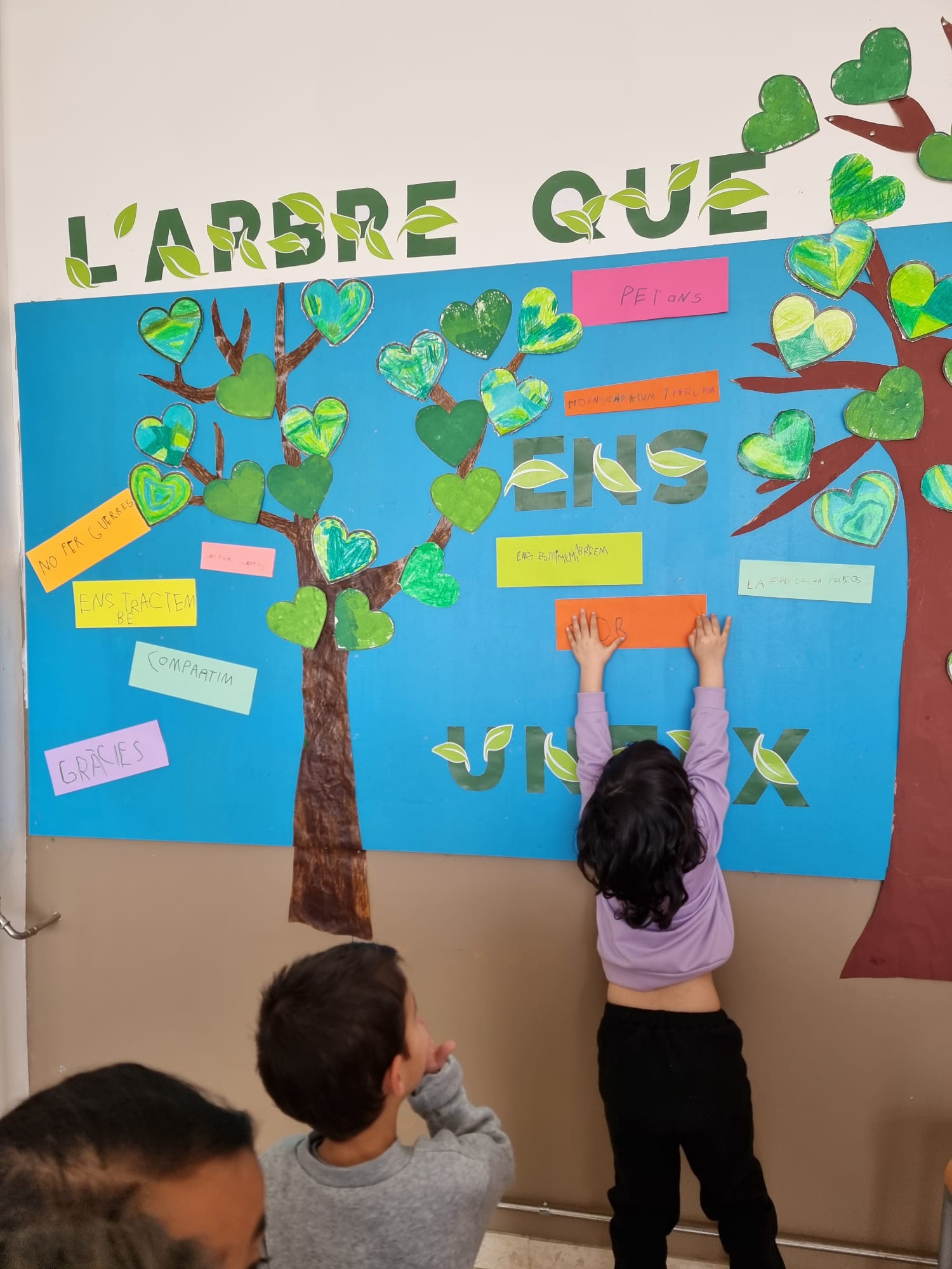 L’alumnat d’Educació Infantil ha creat una mural anomenat “L’arbre que ens uneix” per tal de promoure el treball cooperatiu i reivindicar el respecte, la tolerància i els Drets Humans.