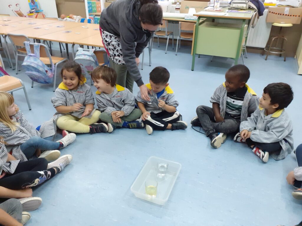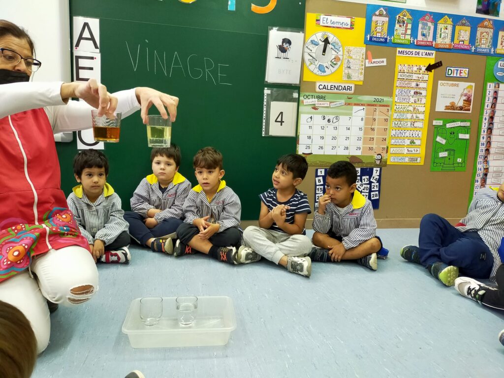Va estar divertit i vam descobrir que quan l’oli s’ajunta amb els altres líquids no es barreja, vam observar que es queda a dalt del vas i els altres líquids es queden a baix.