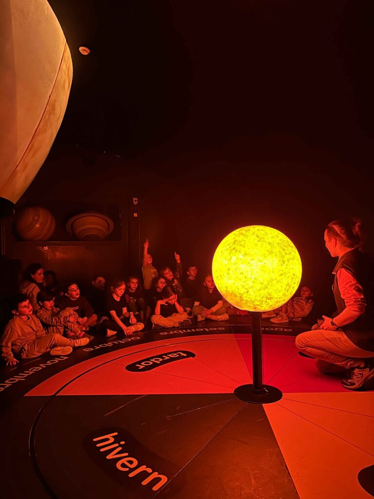 Amb aquesta visita, hem iniciat un nou projecte vinculat a aquest invent. A l’escola ja hem començat a investigar i a treballar diferents conceptes però el més interessant ha estat anar al CosmoCaixa, on, a part de visitar diferents espais del museu, hem pogut entrar al Planetari Bombolla. En aquest espai hem pogut observar el cel, el Sol, la Lluna, els estels i els planetes a través de diferents maquetes. La maqueta Sol-Terra-Lluna ens ha permès interpretar el cicle de dia i nit, les fases de la Lluna, les estacions i els eclipsis.