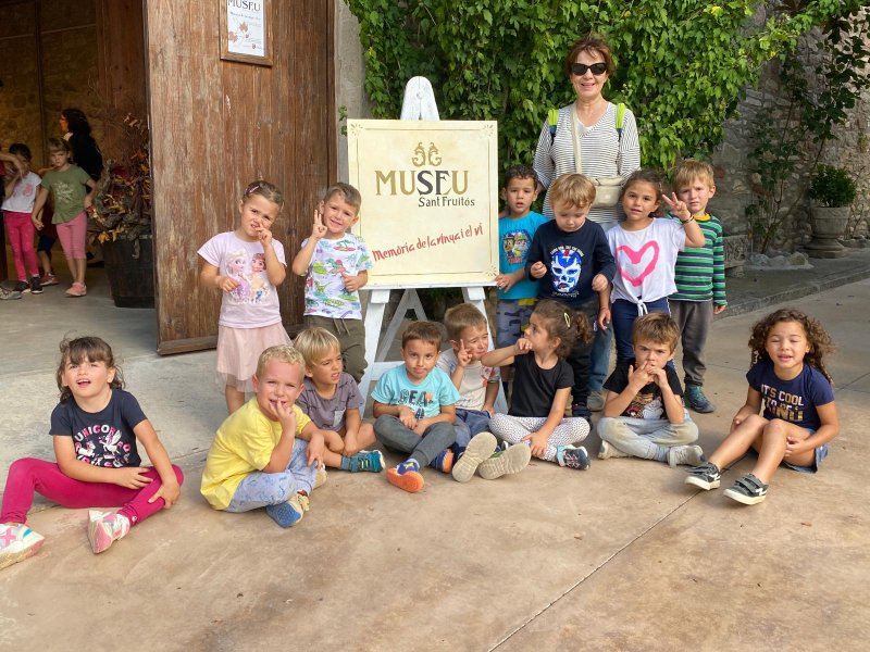 Les nenes i els nens de Infantil 4 i 5 anys estem estudiant el raïm i el cep, les vinyes i la verema. Hem anat al Museu de la memòria de la vinya i el vi de Sant Fruitós de Bages. Allà ens esperava la Liliana, la guia del museu,  que ens ha ensenyat el museu i ens ha explicat moltes coses; hem vist moltes fotos antigues, el carro, les espardenyes d’espart, la portadora, les bótes,… no us ho podeu perdre! És molt interessant!