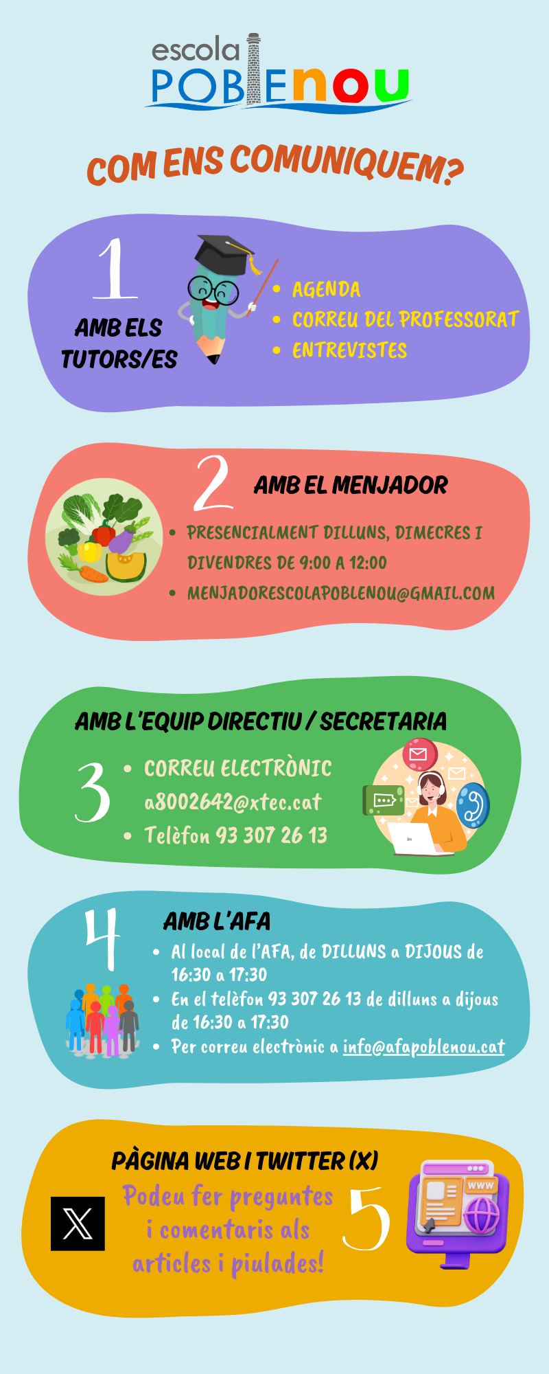 Benvolgudes famílies, Com ja us hem comunicat per correu electrònic, us informem que aquest curs 2024 – 2025 el preu conjunt de les sortides i el material escolar és el següent: EDUCACIÓ INFANTIL: 190 EUROS EDUCACIÓ PRIMÀRIA: 130 EUROS Per tal de facilitar el pagament us proposen dues opcions : 1a opció Un sol pagament de la quota […]