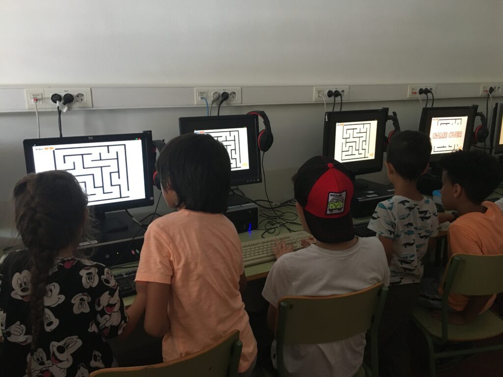 L’alumnat de 4t ha ensenyat als seus fillols i filloles que ara fan P5 un joc petit i senzill que han dissenyat a informàtica. Ho han treballat amb el programa Scratch. A canvi P5 els hi ha ensenyat allò que hem après per reforçar la llengua i les matemàtiques d’una manera més lúdica utilitzant l’ordinador.