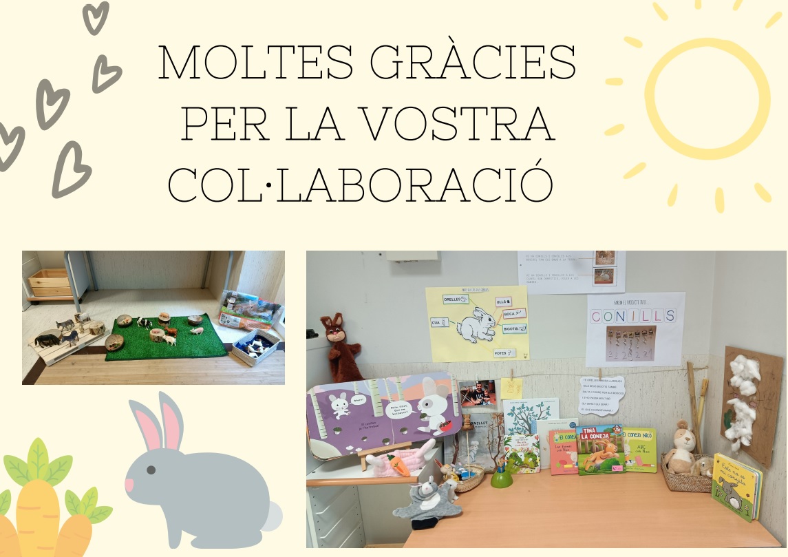 Els nens i nenes de la classe del Sol i de l’Aigua hem acabat el nostre projecte dels Conills P3A i les Vaques P3B. Ens ha agradat molt, hem pogut treballar de forma conjunta per aprendre més coses sobre aquests animals de granja.
