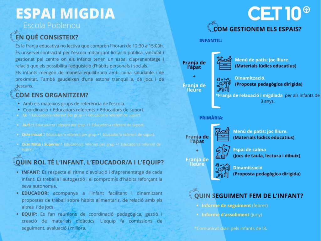 Organització Espai Migdia Escola Poblenou Feu un comentari / Per Menjador Escola Poblenou / 7 de setembre de 2025 / Menjador