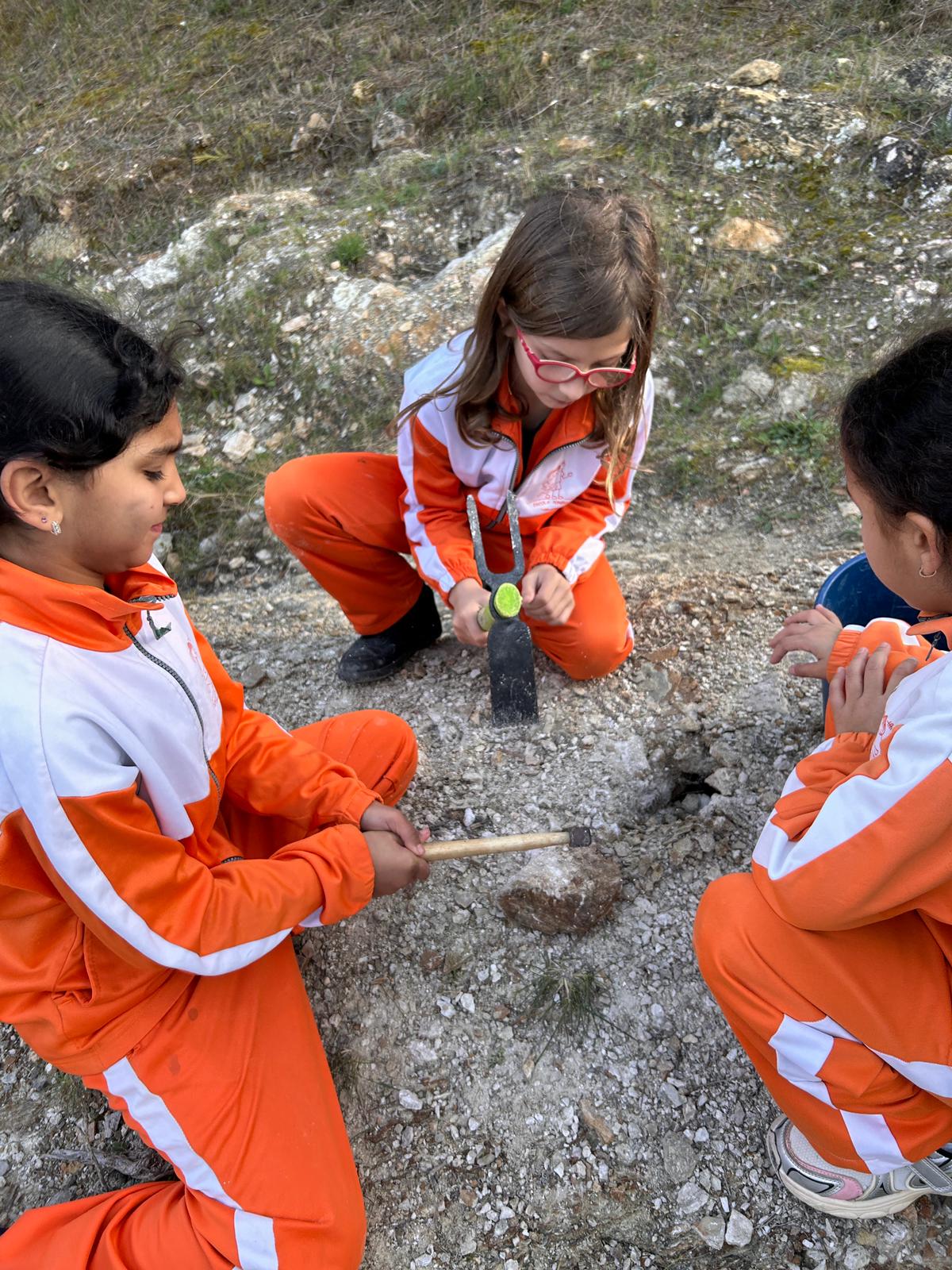 això és un no parar i només portem un dia de colònies. Després d’un joc de presentació ens hem instal·lat a “Ca Manxol” i hem anat a dinar a l’ermita del poble. Aquesta tarda taller de minerals i ara… a carregar energies amb un bon sopar, que en una estona comencem el joc de nit. 😉😉