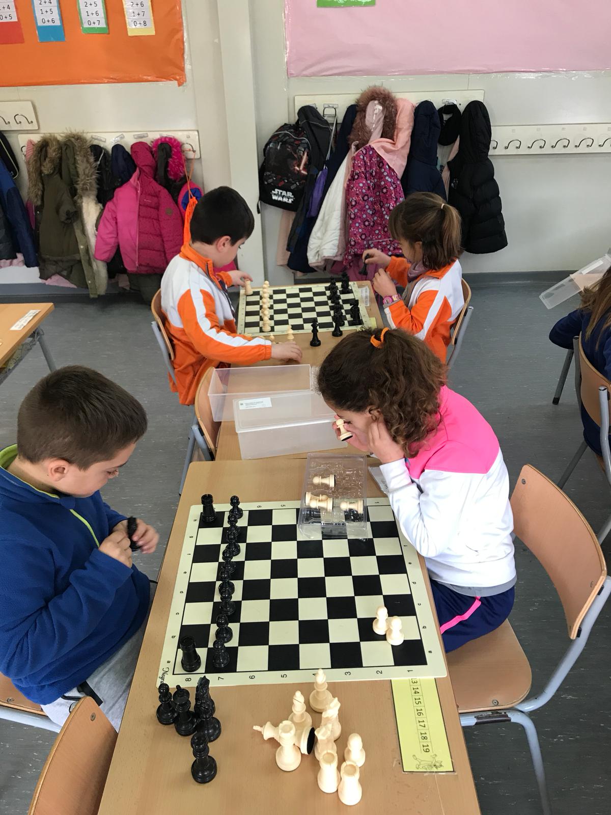 Iniciem els escacs! Feu un comentari / Per EscPonent / 25 de gener de 2019 / 1r Escacs a l'Escola / escacs Els nens i les nenes de primer hem començat a aprendre escacs!