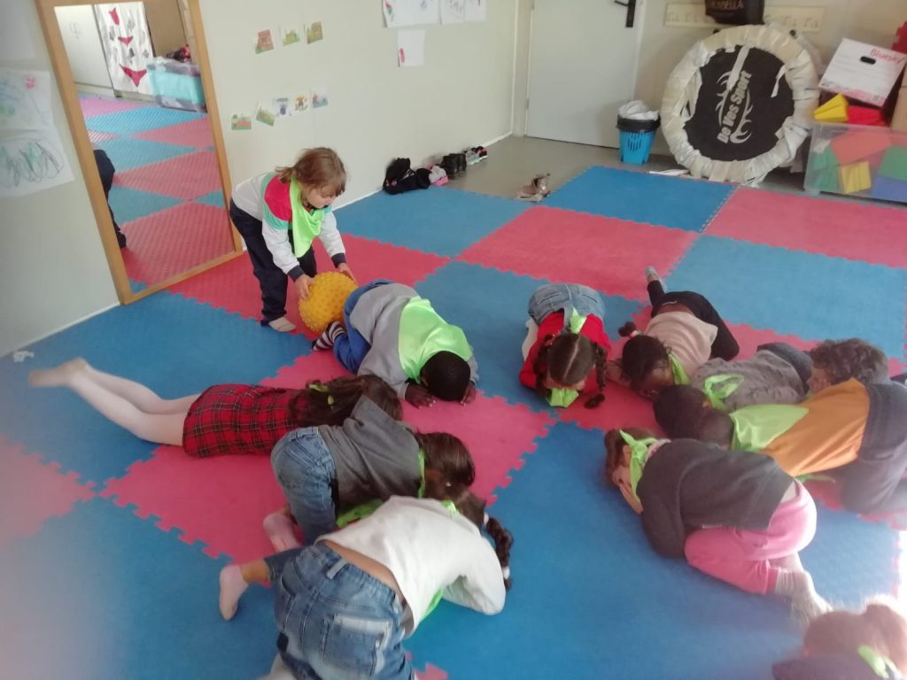 Els dimecres per la tarda, ens posem el mocador al coll, ens agrupem amb els altres nens i nenes d’infantil