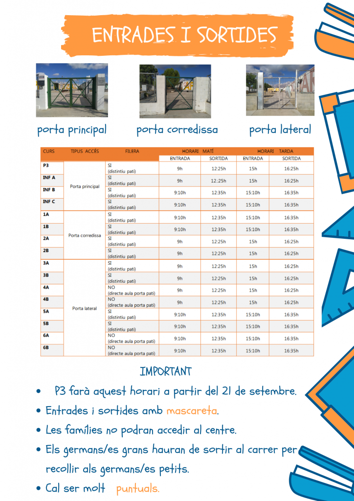 Estimades famílies, Al següent document podeu consultar l’organització de les entrades i sortides per aquest curs 2020-2021. IMPORTANT: DIMARTS 8 […]