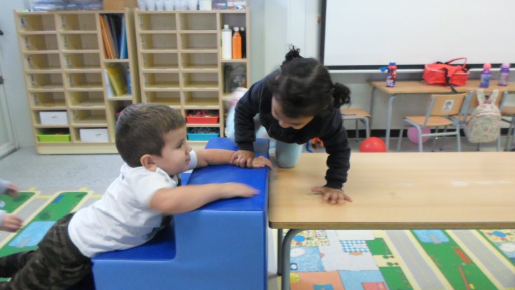 Els més petits de l’escola s’ho passen d’allò més bé fent psicomotricitat. Amb les diferents peces pugem i baixem, ens
