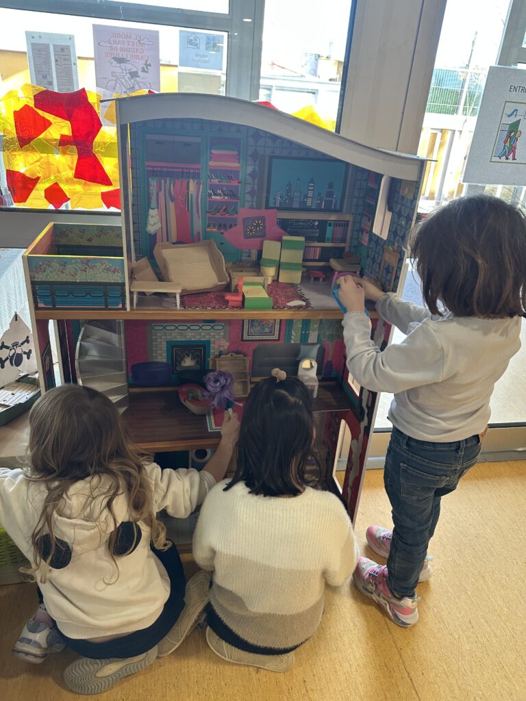 La caseta és un espai de joc simbòlic on els infants d’I3, I4 i I5 poden representar diferents rols i recrear situacions de la vida quotidiana a través del joc compartit. En aquest ambient, els infants poden jugar a botiguers i clients, crear una família, cuinar, tenir cura dels nadons, rentar i planxar la roba