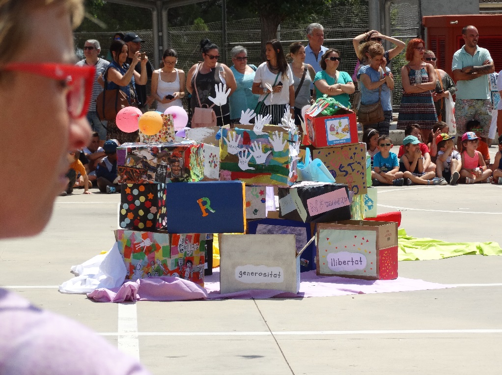 Com a cloenda d’un eix transversal que vertebra l’escola, el projecte i la nostra forma de veure l’ensenyament, els alumnes de tota l’escola des dels més grans fins als més menuts, realitzaren el passat dijous una activitat que representa molt bé, els valors. Dividits per grups de totes les edats, els nostres alumnes realitzaren diverses
