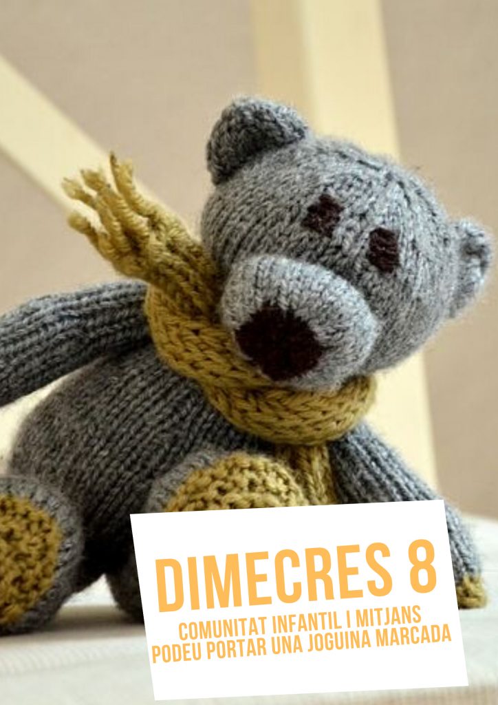 Hola famílies, Recordeu que dimecres 8 de gener tots els nens i nenes de la comunitat d’infantil i mitjans poden portar una joguina marcada amb el nom. Fins dimecres!