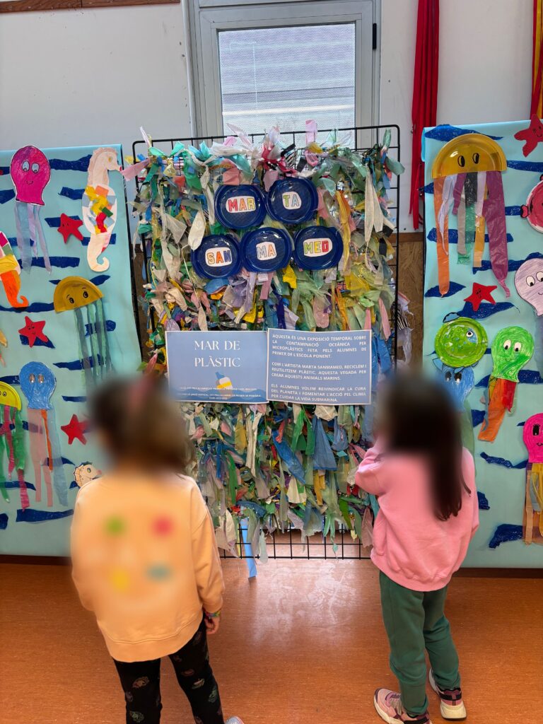 Els i les alumnes de primer hem estat aquestes darreres setmanes a les classes d’Art preparant aquesta exposició temporal sobre la contaminació oceànica per microplàstics. Després de conèixer a l’artista Marta Sanmamed, reciclem i reutilitzem plàstic, aquesta vegada per crear aquests animals marins. Els i les alumnes volem reivindicar la cura del planeta i fomentar