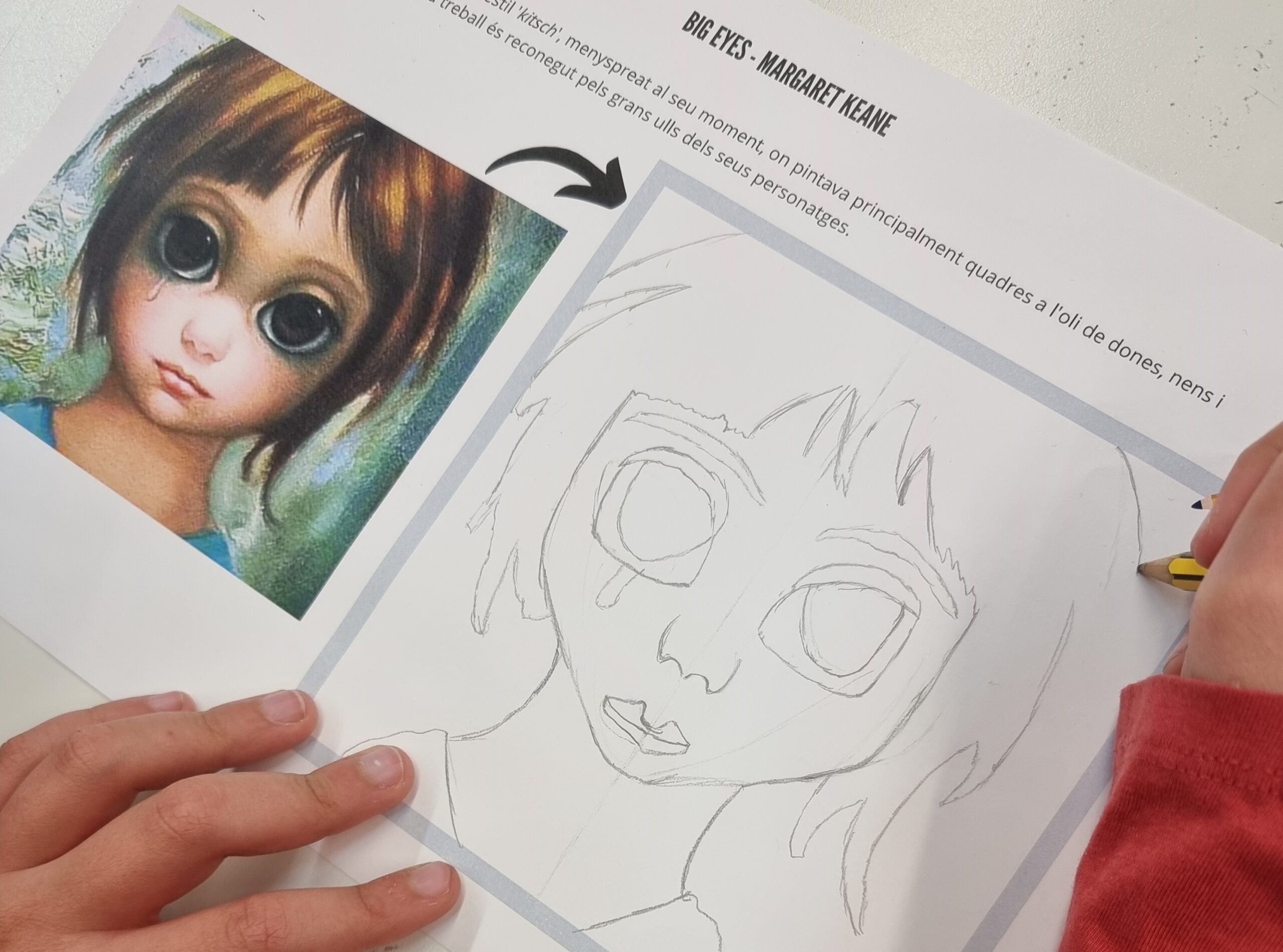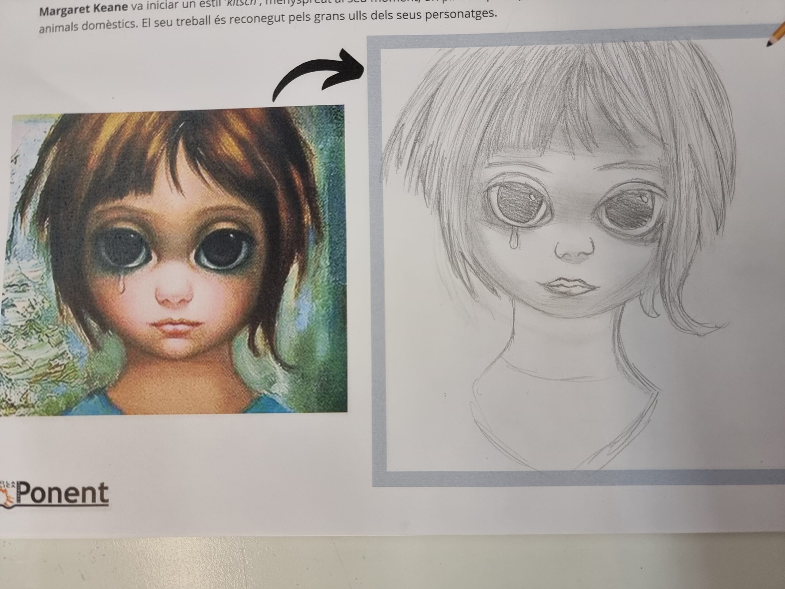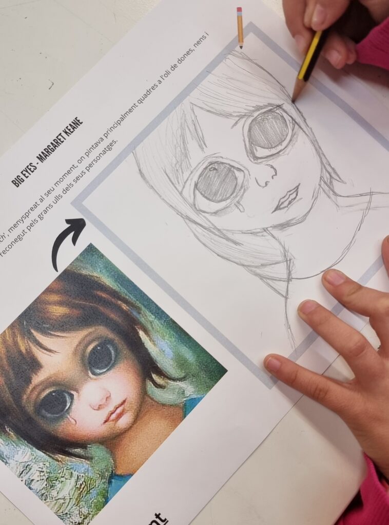 Després de conèixer la història de l’artista, a continuació us presentem l’activitat final que hem realitzat, un dibuix d’un dels seus quadres d’ulls grans. Esperem que us agradi.