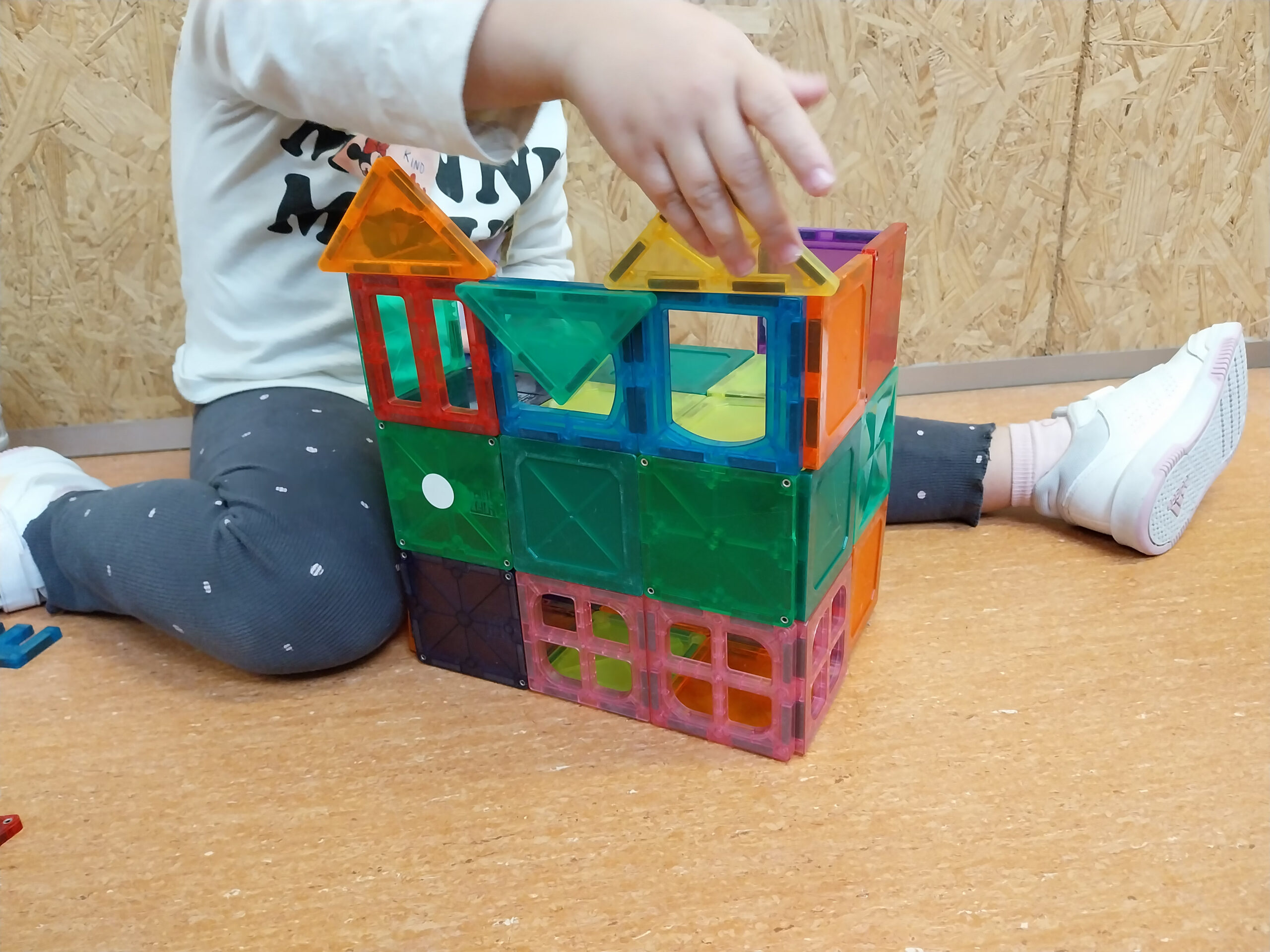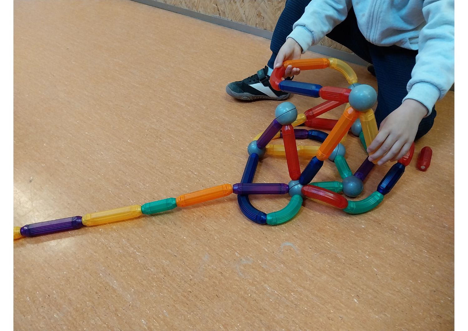 Disposem de materials variats com peces magnètiques, fustes, legos, imans, pots, llaunes, maons transparents, etc, que ofereixen múltiples possibilitats de combinació i permeten construir tant creacions lliures com reproduccions a partir de models. A través del joc, els infants posen en pràctica estratègies d’assaig-error, planifiquen, proven, rectifiquen i busquen solucions als petits reptes que sorgeixen durant el procés.