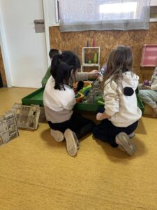 A partir de diferents materials i propostes, creen petites històries de manera individual o compartida, tot gaudint del procés creatiu. L’ambient afavoreix la conversa, l’intercanvi d’idees i la cooperació, així com el respecte pel joc dels altres i l’escolta atenta de les explicacions dels companys i companyes, en un clima tranquil i acollidor.