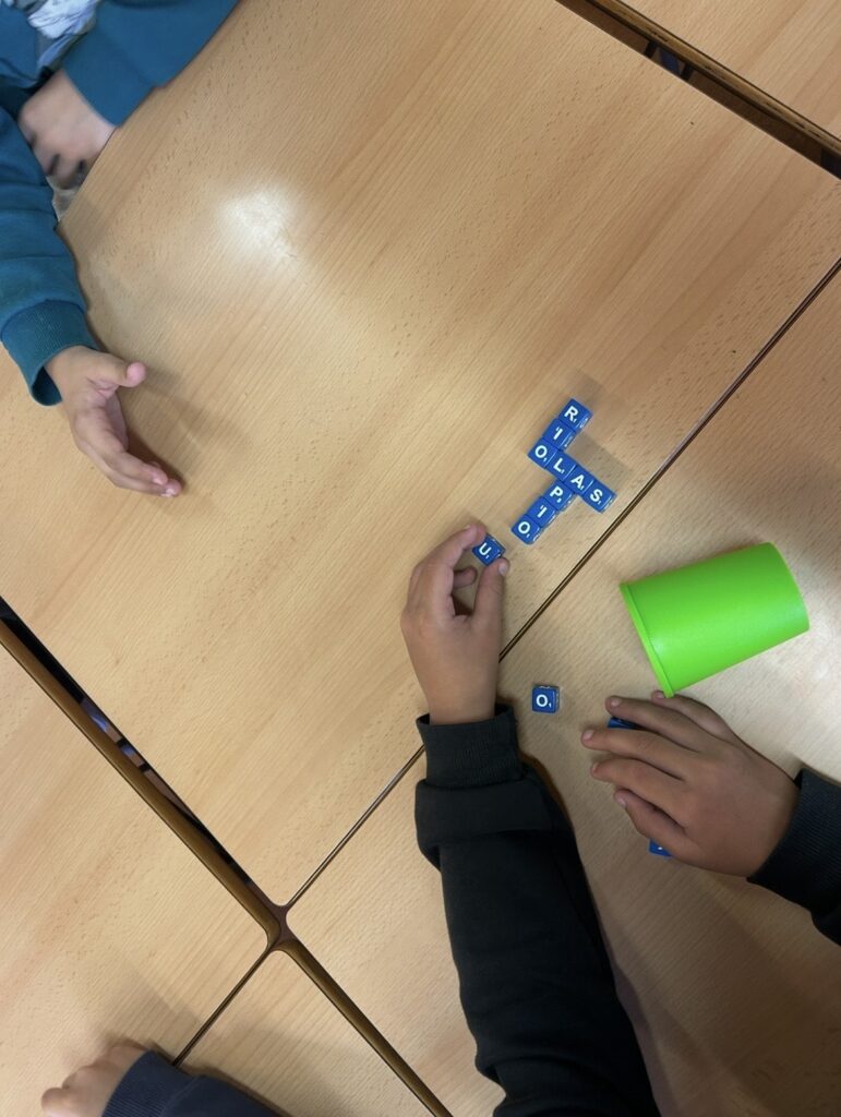 A la comunitat de mitjans, l’ambient de Jocs de llengua té com a finalitat treballar la llengua catalana i castellana a través del joc, afavorint així un aprenentatge significatiu, lúdic i cooperatiu. Mitjançant aquesta proposta, els infants aprenen jugant, fet que incrementa la seva motivació i implicació en el procés d’aprenentatge.