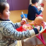 A l’ambient de la caseta, nens i nenes juguen a fer de grans: preparen a la cuina uns plats exquisits,