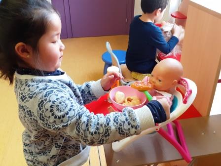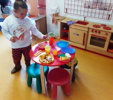 A l’ambient de la caseta, nens i nenes juguen a fer de grans: preparen a la cuina uns plats exquisits,