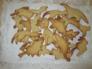 LLavors hem anat seguint les instruccions del power point sobre quins ingredients posar, quina quantitat… Hem fet la massa després d’estirar-la i posar el motlle de dinosaure que més ens agradat hem aconseguit el resultat final de les nostres galetes.