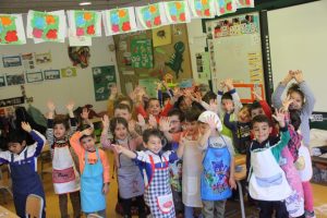 De seguida el primer que hem fet ha estat posar davantals i rentar i mans.