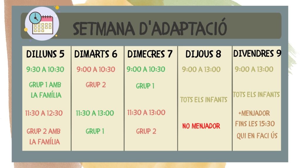 HORARI D’ADAPTACIÓ DEL 5 AL 9 DE SETEMBRE