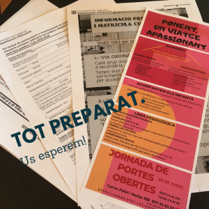 Tot preparat per portes obertes Feu un comentari / Per admin / 26 de març de 2019 / Portada Per fi ha arribat el dia de portes obertes. Recordeu que hi haurà un torn a les 9.30 del matí i a les 15:15 de la tarda. Us esperem!