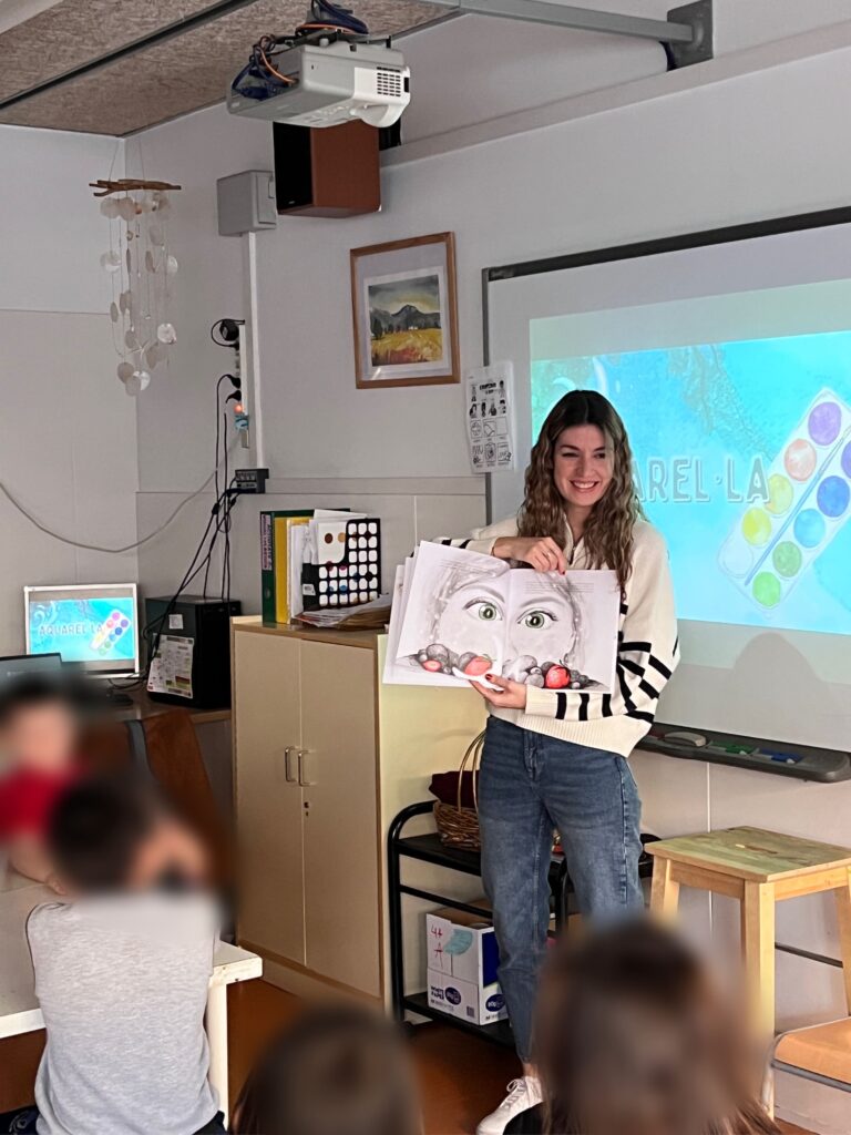 Bona tarda, famílies! Durant dues tardes d’art hem tingut la sort de comptar amb la visita d’una artista que treballa molt, però que molt bé l’aquarel·la. Aquesta artista és… l’Anna Batalla! La mestra d’anglès de l’escola també és artista i li encanta pintar amb aquarel·la. Ens hem adonat que d’artistes no només trobem als museus,