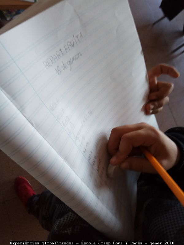 3r.-A cada aula cadascú feia una tasca diferent: un explicava el que anavem a fer, altre realitzava un recompte, un altre alumne ho anotava i finalment, un alumne diferent feia el repart.