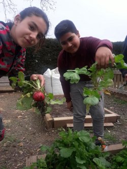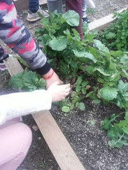 Ahir dijous vam baixar de nou a l’hort. Vam netejar-lo de papers i fulles. Després vam arrencar els raves i vam deixar l’hort per tornar a plantar la setmana que ve. Hem vist que les cebes van creixent i que ja tenim julivert. Algú el desembre passat ens va arrencar tots els enciams que havíem plantat. En tenim 3 que podrem arrencar aviat.