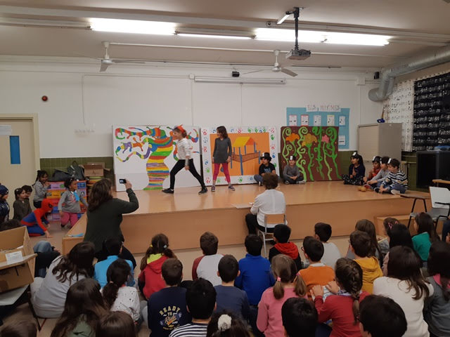 Per celebrar el dia de Sant Jordi els nens i nenes de segon i tercer hem fet una activitat intercicle. Primer els nens i nenes de les classes de gossos i esquelets han representat una obra de teatre per als nens i nenes de tercer. Després, els i les alumnes del Cinema i l’Antàrtida han preparat una lectura compartida amb Els Gossos i Els Esquelets. Se’ns ha fet molt curt i ho hem passat molt bé!