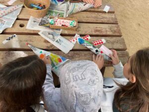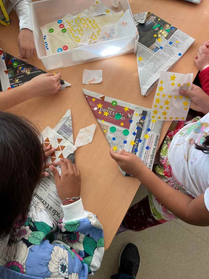 Aquest curs hem començat la celebració fent  paperines. Els mes grans de l’escola han ajudat  els més petits: 4t, 5è i 6è amb infantil. L’alumnat de 1r, 2n i 3r ha estat els encarregats de comptar i repartir les castanyes a cada grup.