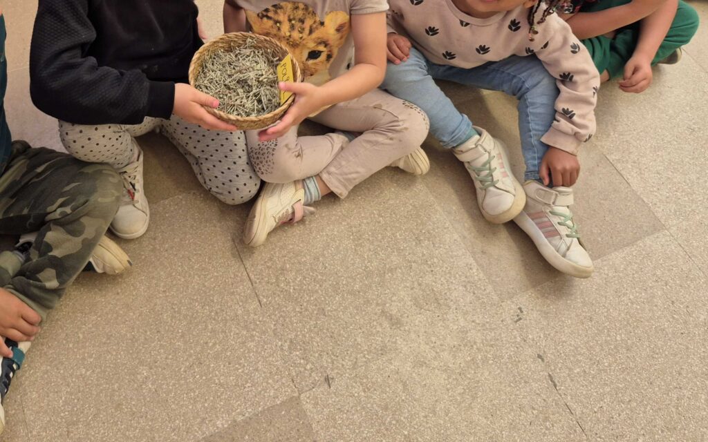 El dia de la celebració, vam baixar al vestíbul d’Educació Infantil per visitar una paradeta molt especial, plena d’herbes aromàtiques com el poliol, la menta, la maria lluïsa, l’anís estrellat, la canyella i l’espígol. Allà vam poder tocar, olorar i experimentar amb aquestes plantes, descobrint els seus colors, textures i aromes.