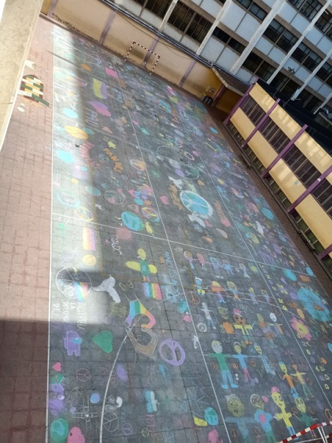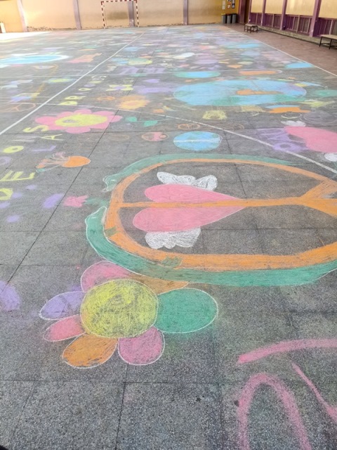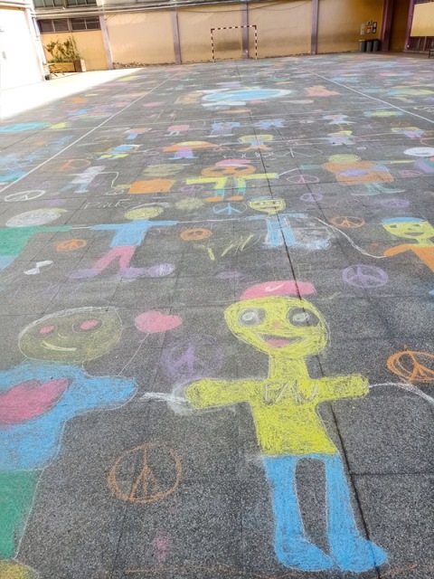 Aquest curs hem celebrat el dia de la no violència i la Pau fent grans il·lustracions a la pista del pati i del jardí. Hem preparat la cançó ” El swing  de la Pau” i hem fet un vídeo amb les actuacións de cada grup. Cliqueu les fotos per a accedir a la pàgina