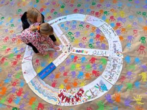 Com cada any celebrem el DIA ESCOLAR DE LA NO VIOLÈNCIA I LA PAU. Hem fet un mural amb les mans de tot l’alumnat de l’escola i avui cada classe ha enganxat al símbol de la pau la paraula o frase que entre tots i totes havien decidit. Ens ha quedat molt vistós.