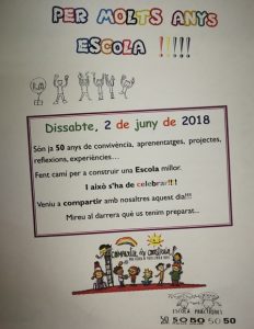 DISSABTE 2 de JUNY CELEBREM EL 50è ANIVERSARI DE L’ESCOLA