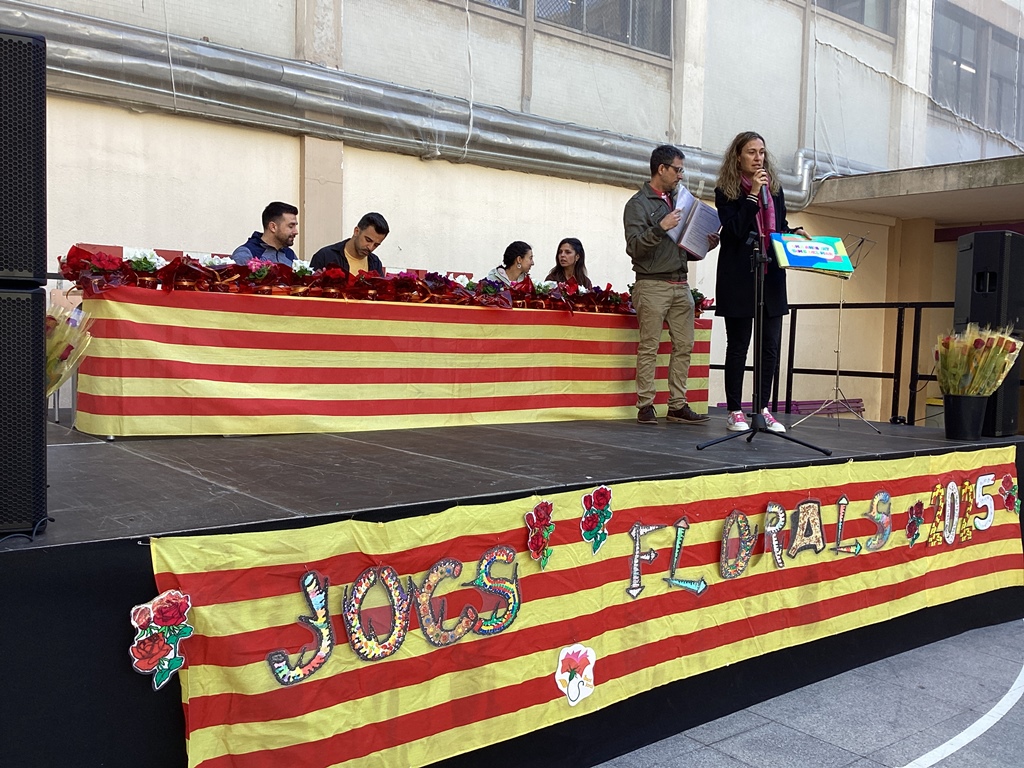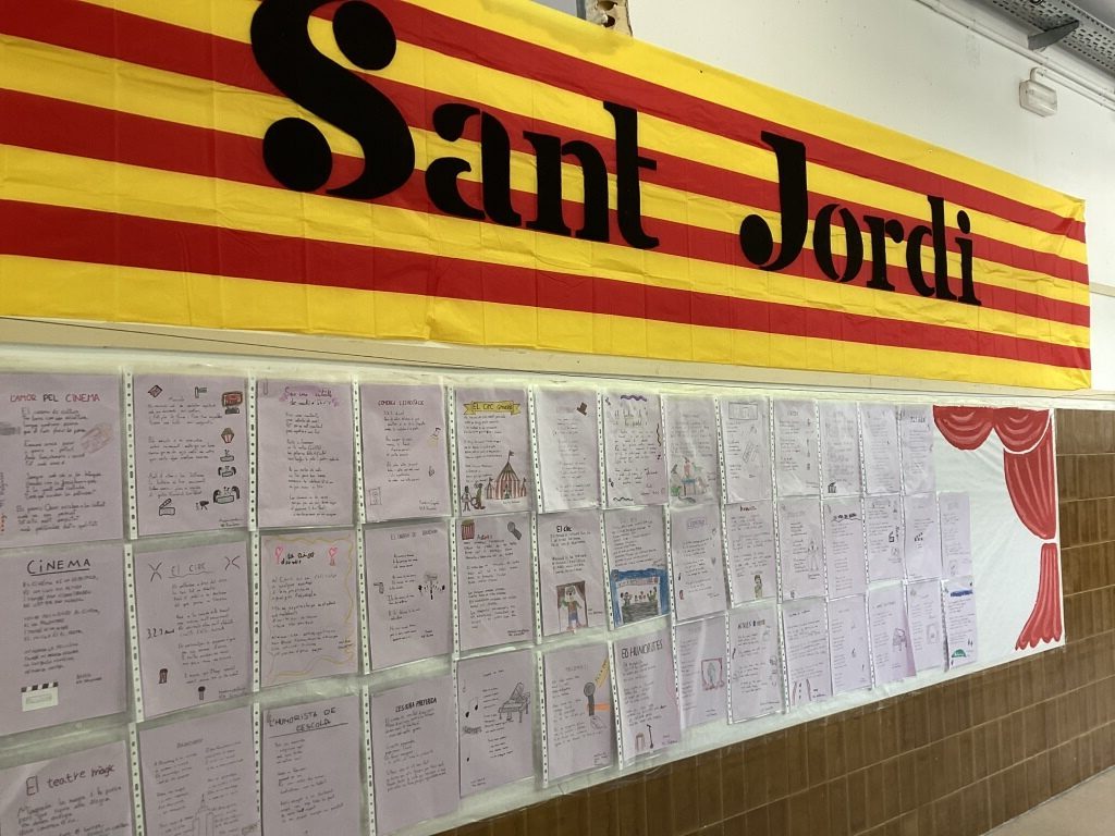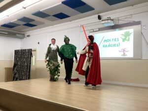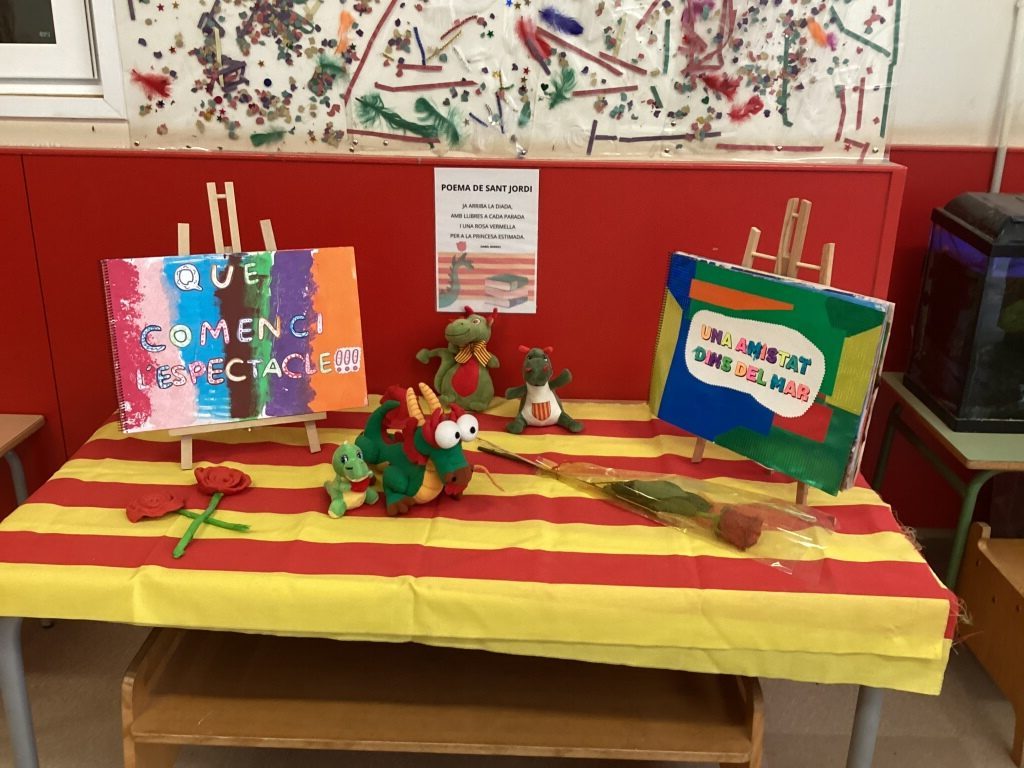 Al matí vam repartir els premis dels Jocs Florals de l’escola. A continuació, per grupet,  vam anar a veure la representació teatral feta per mestres de l’escola: “Una altra llegenda de Sant Jordi”.