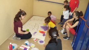 P3 i sisè  i P5 i cinquè: Els padrins van preparar i llegir contes amb els fillols Després van organitzar recerques de tresors, murals,  teatres, ombres xineses…i moltes activitats per a gaudir junts.