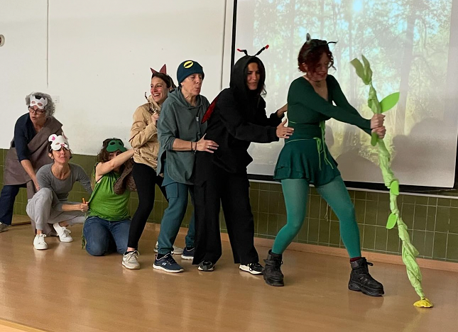 Durant el matí vam fer diferents activitats com decorar la colònia que havíem fet prèviament. També, vam gaudir de l’actuació de les mestres d’infantil que van representar l’obra de teatre: “El cargol i l’herba de Poniol”.