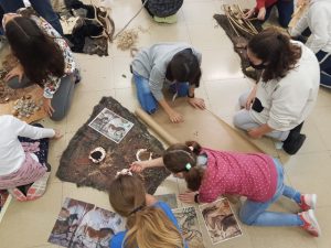 Van fer l’eix cronològic. Vam fer un repàs de l’evolució d’aquesta època i vam fer racons: per a fer eines, vestits, pintar la cara amb fang, les pintures rupestre i el foc. Va ser genial