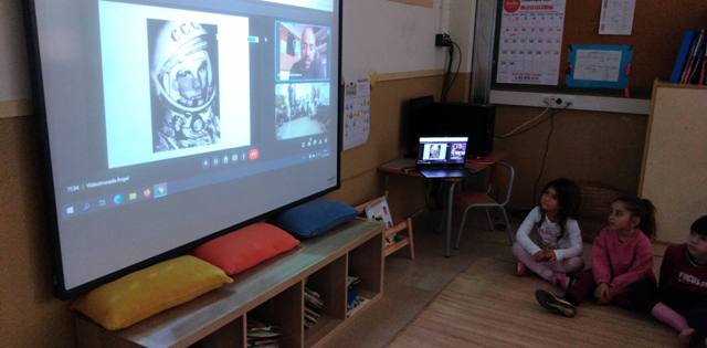 La classe dels coets hem fet una videotrucada amb l’Àngel Santamaria, que va treballar a la NASA i que ho fa actualment a la Universitat Politècnica de Catalunya.
