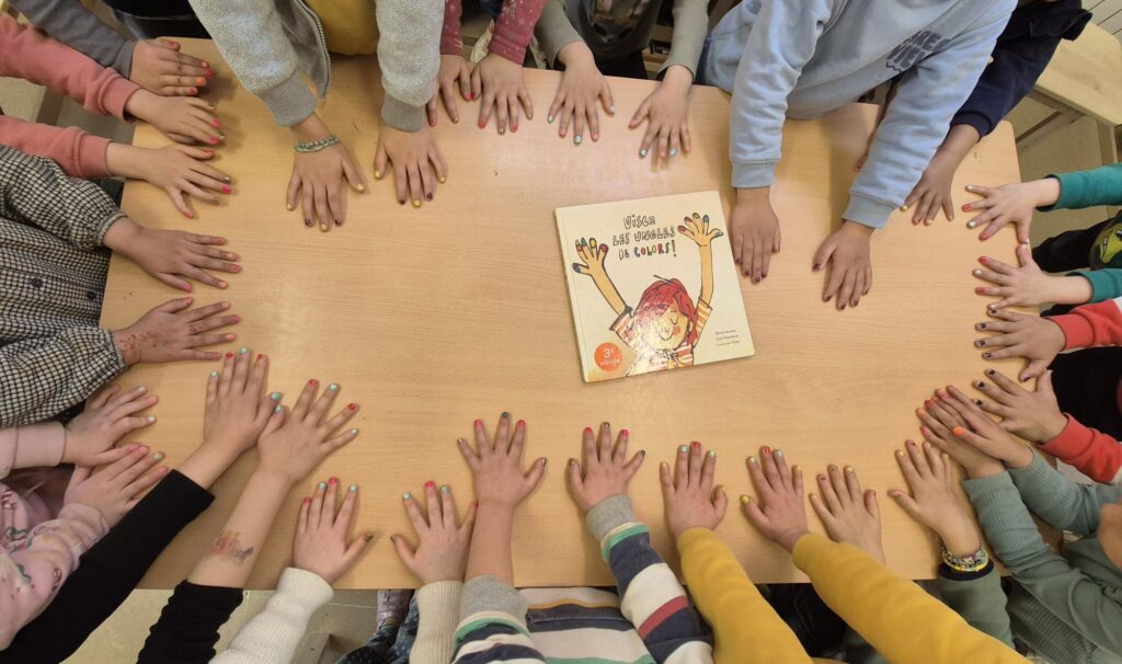 Per alimentar aquesta conversa i fer-la créixer, hem explicat el conte Visca les ungles de colors, una història preciosa que ens parla d’en Joan, un nen que s’estima pintar-se les ungles tot i que alguns li diuen que això “és de nenes”. El conte ens ha ajudat a reflexionar i a entendre que els colors no tenen gènere i que tothom pot expressar-se lliurement, sempre amb respecte i alegria.